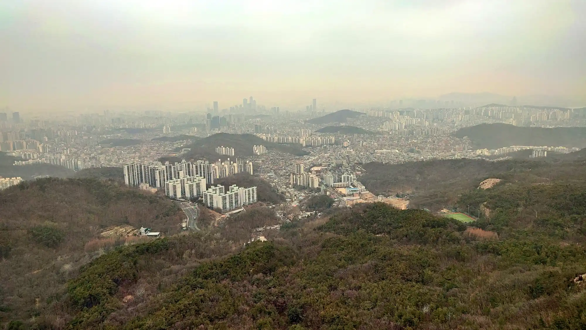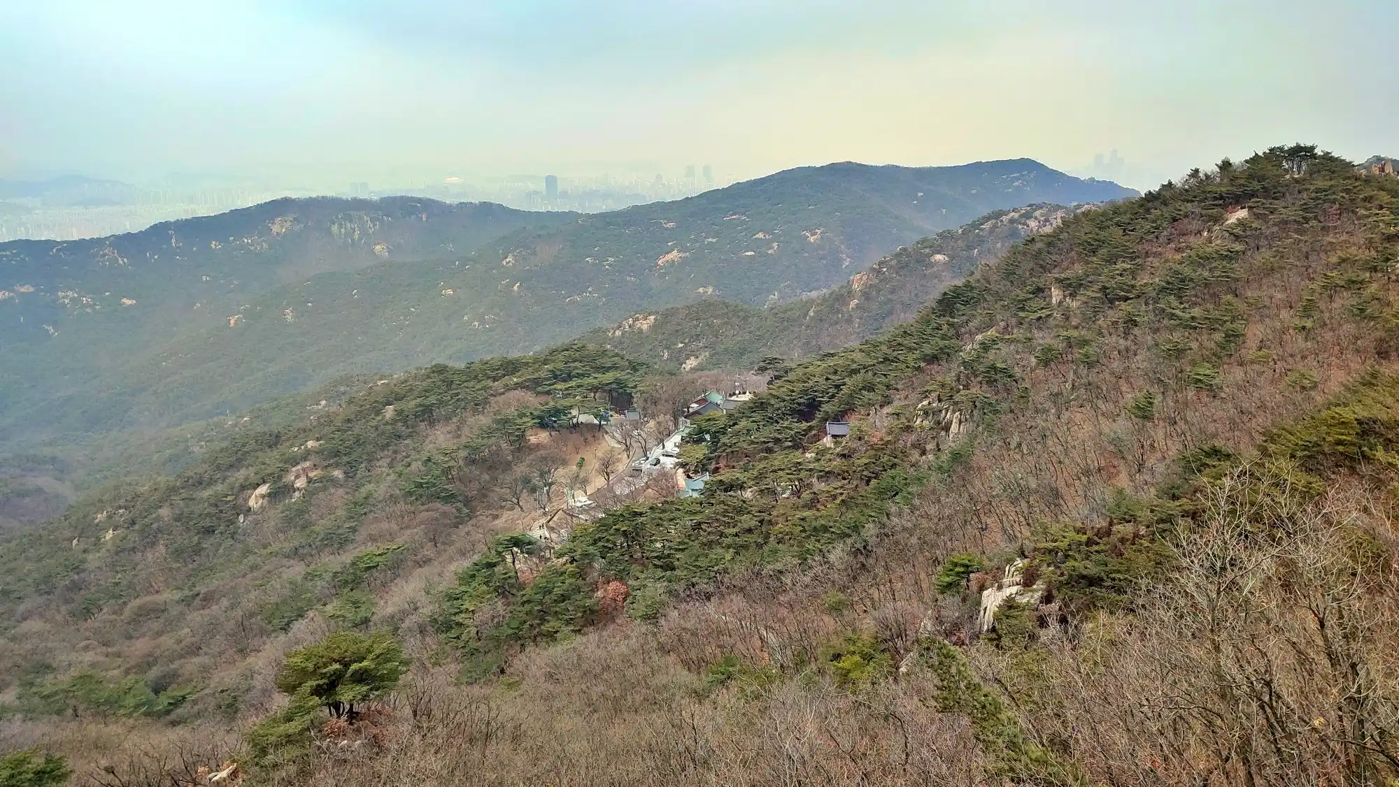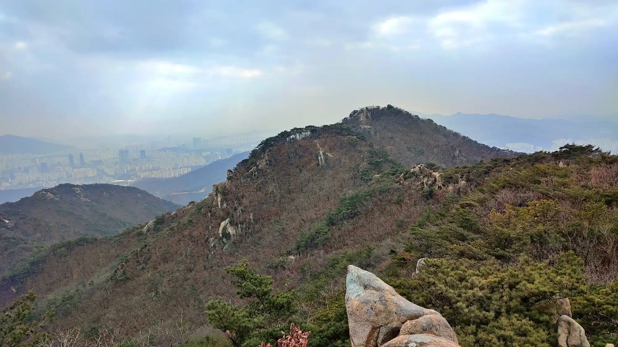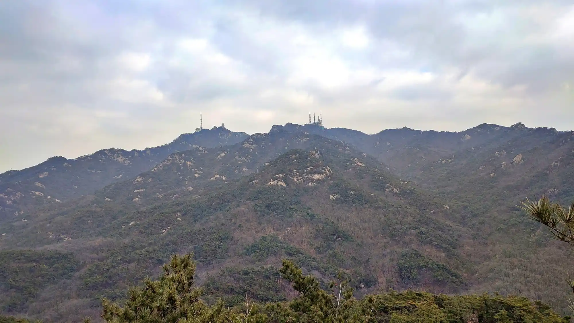I hiked for the first time in a long while. I hiked Samsungsan and Hoamsan. These two mountains are right next to each other, so it’s good to hike them together. It was very cloudy, but it wasn’t too cold because the wind was calm. I didn’t go hiking for almost a month because of the cold and snow. Maybe that’s why, but it was hard. I was satisfied when I reached the top.