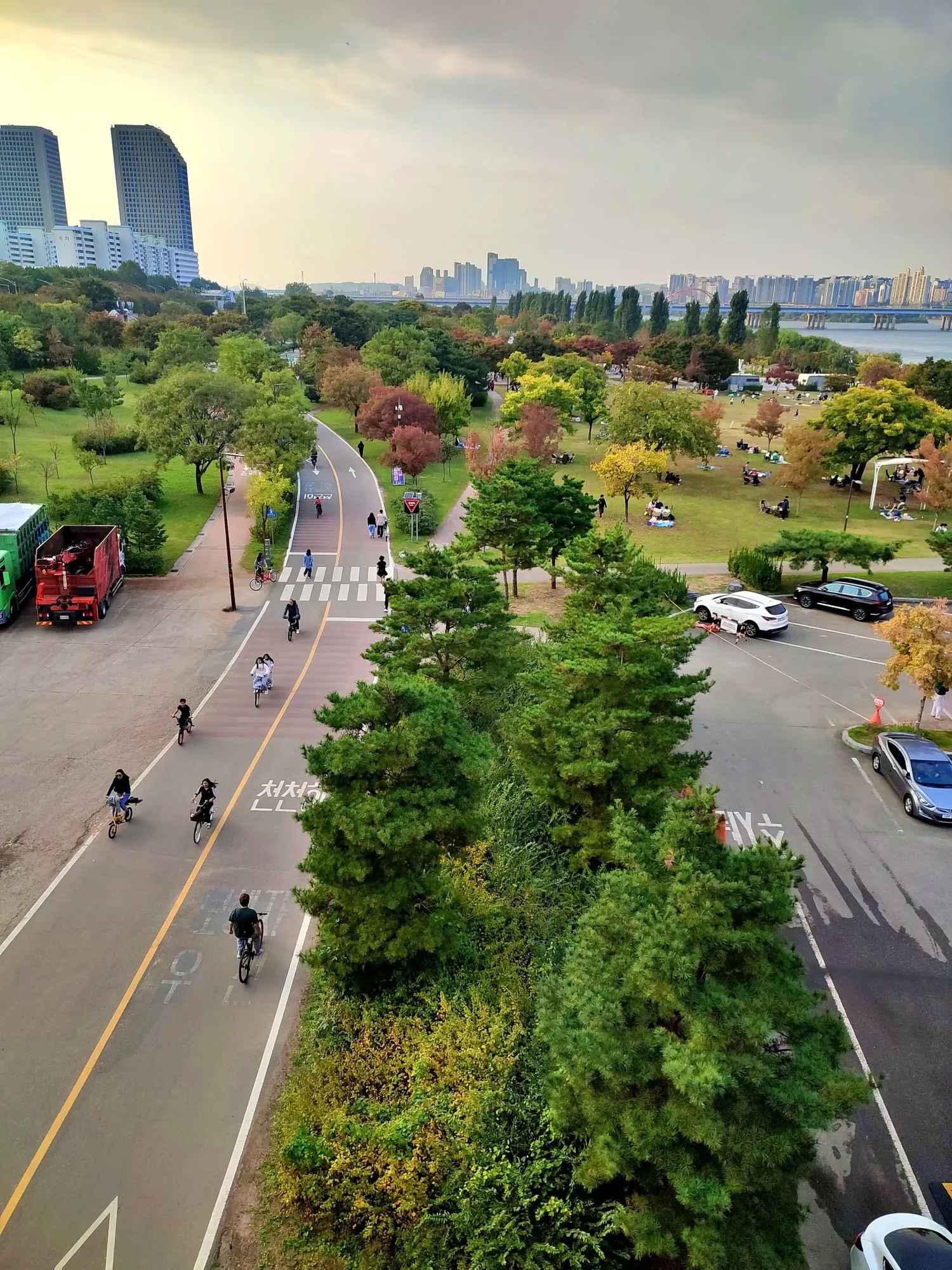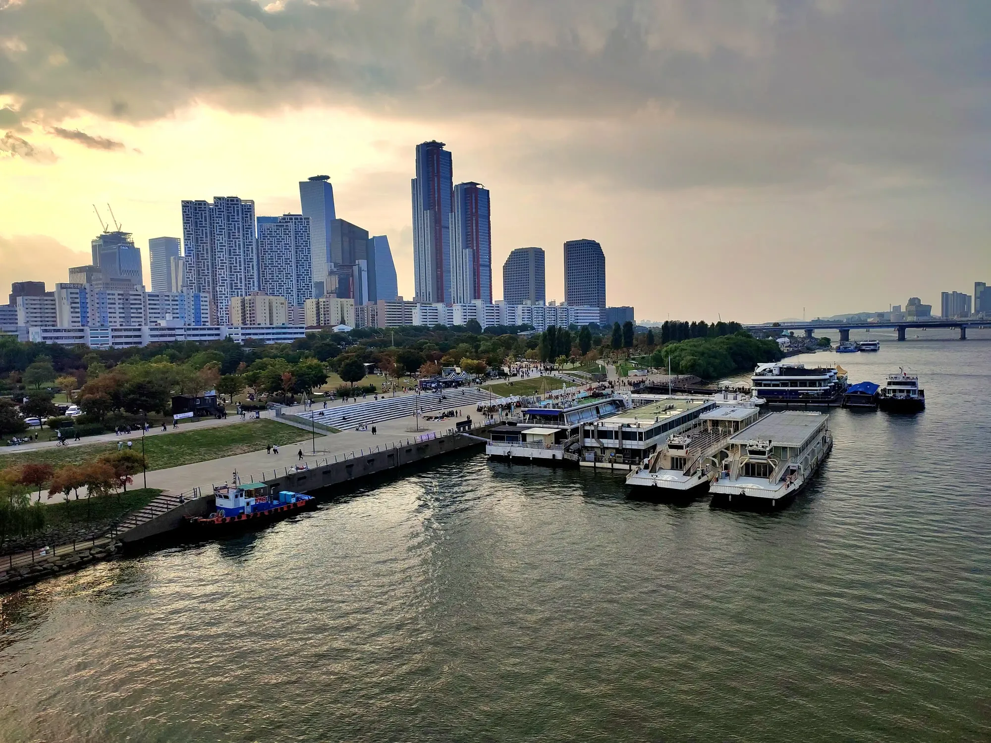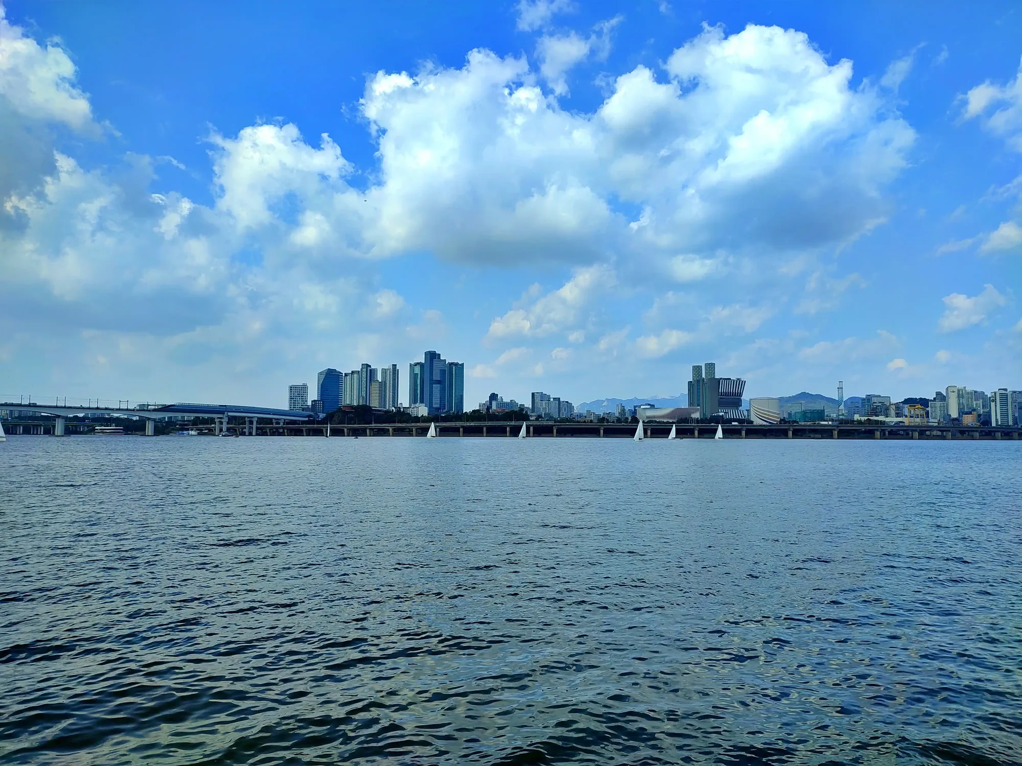 The Hangang River is a big river that crosses Seoul. There are walkways and bicycle paths along the river, and parks and lawns are everywhere. The Hangang River is a valuable resting place for Seoul citizens.