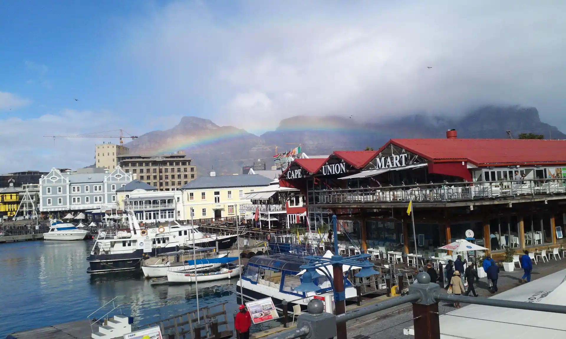 While I was in South Africa, I took a short trip to Cape Town. The view of the city from the airplane was impressive. This was the first place I visited. I was not sure of its exact location, so I searched for it and found that it was the Victoria & Alfred Waterfront. It was a wonderful place, with the beautiful ocean stretching out against the backdrop of Table Mountain.