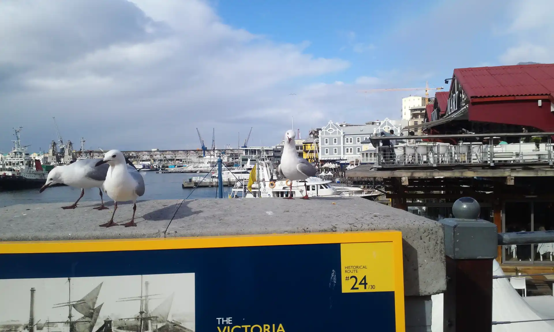 남아공에 있는 동안 케이프타운으로 짧은 여행을 갔습니다. 비행기에서 내려다본 도시의 모습은 인상적이었습니다. 첫 번째 방문지는 이곳입니다. 정확히 어디인지 몰라서 검색해보니 Victoria & Alfred Waterfront라는 곳이었습니다. 테이블 마운틴을 배경으로 아름다운 바다까지 펼쳐져 있어 멋진 곳이었습니다.