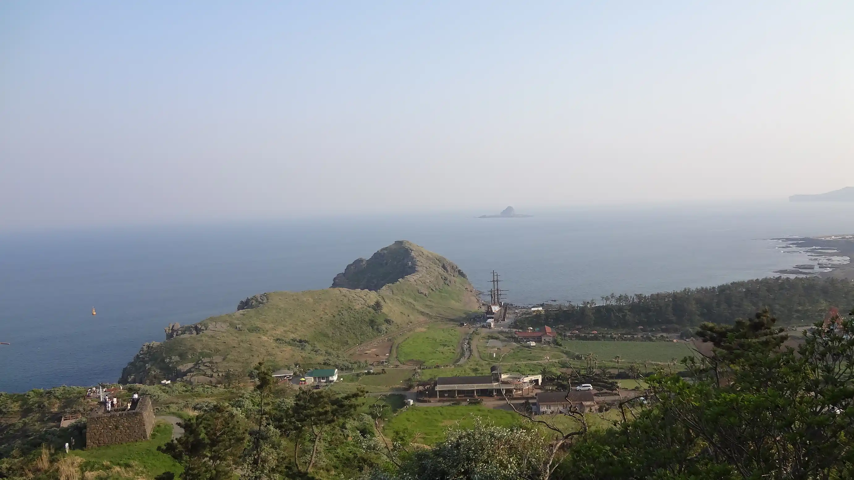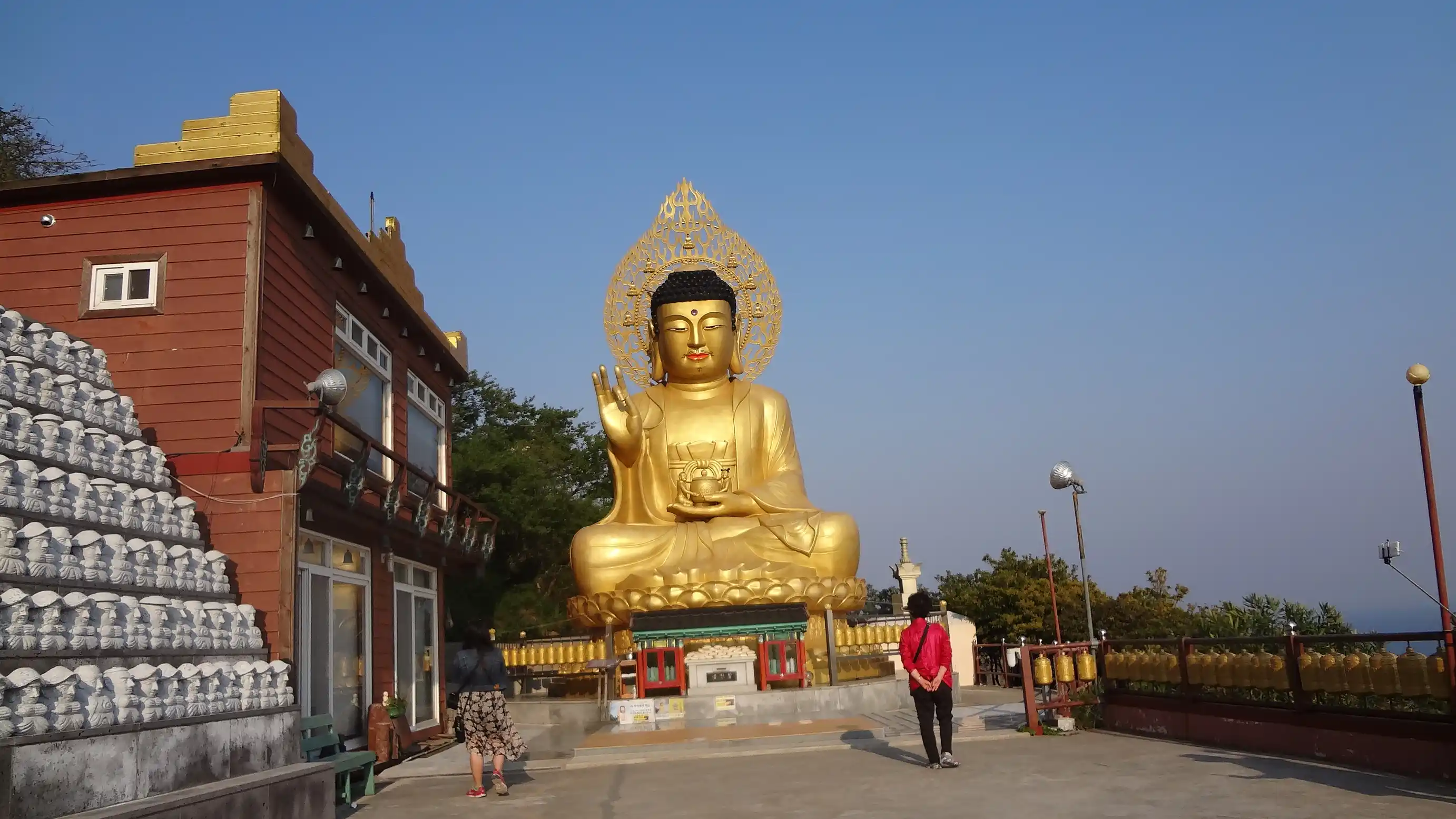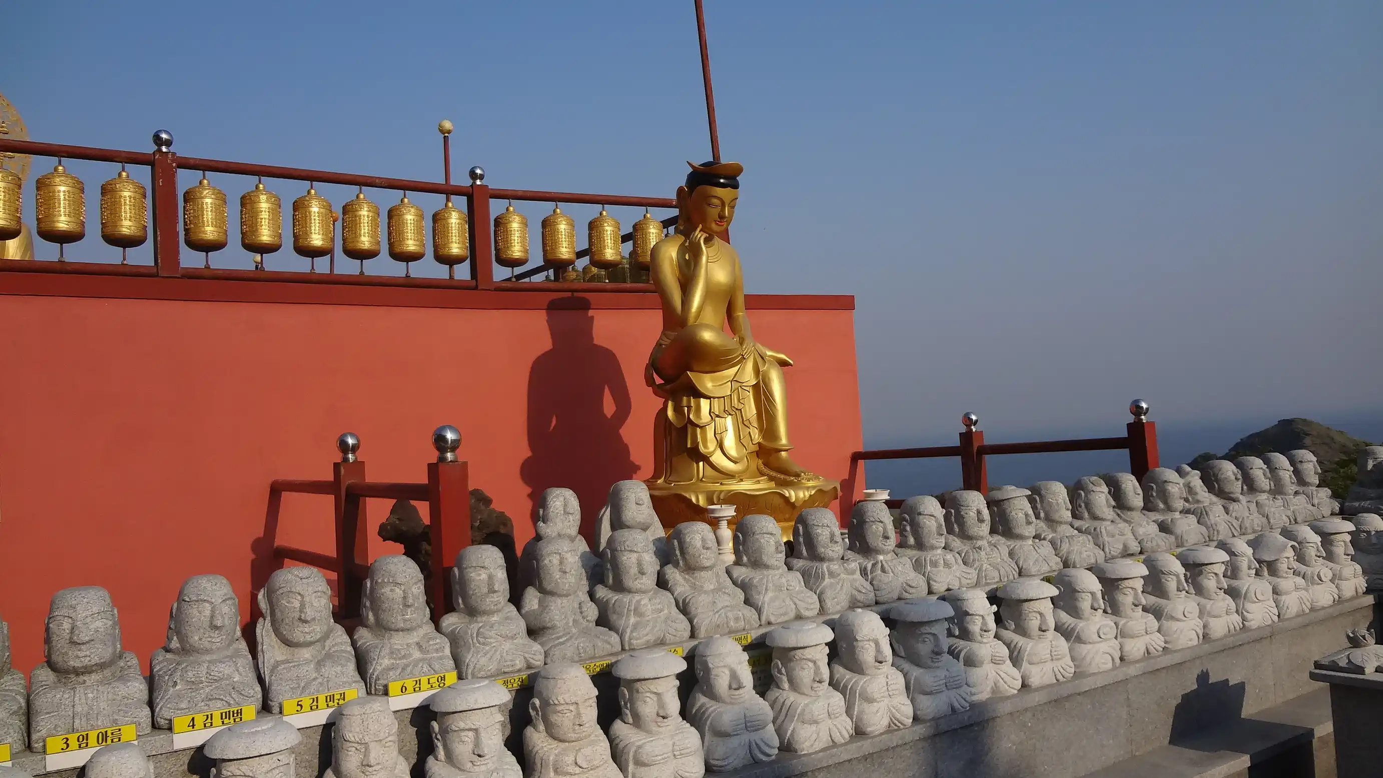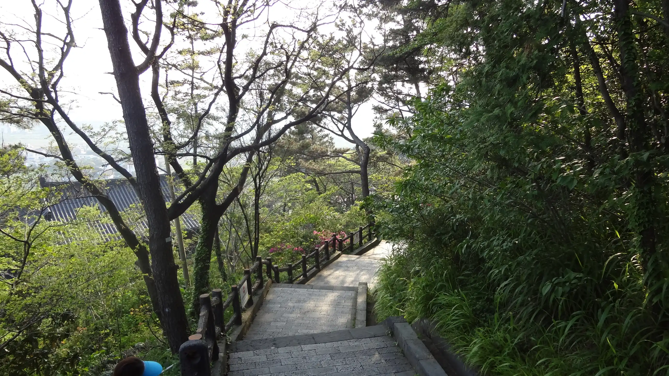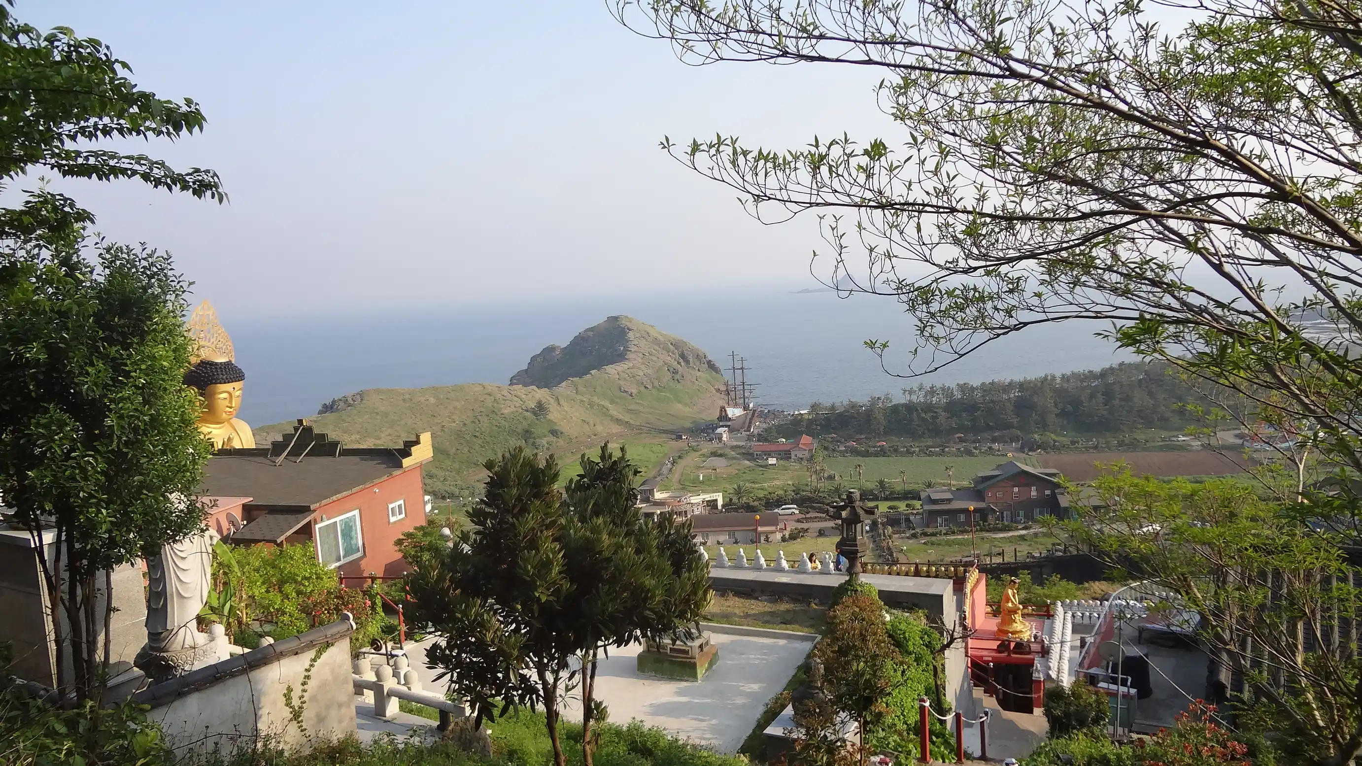 I visited Sanbangsan Mountain. I was able to walk along the mountain path, the view was good, and I could see several temples and Buddha statues. It was a nice place.