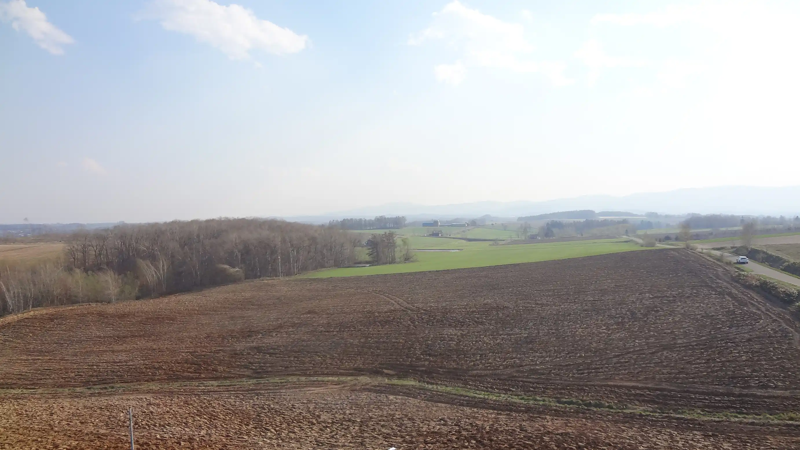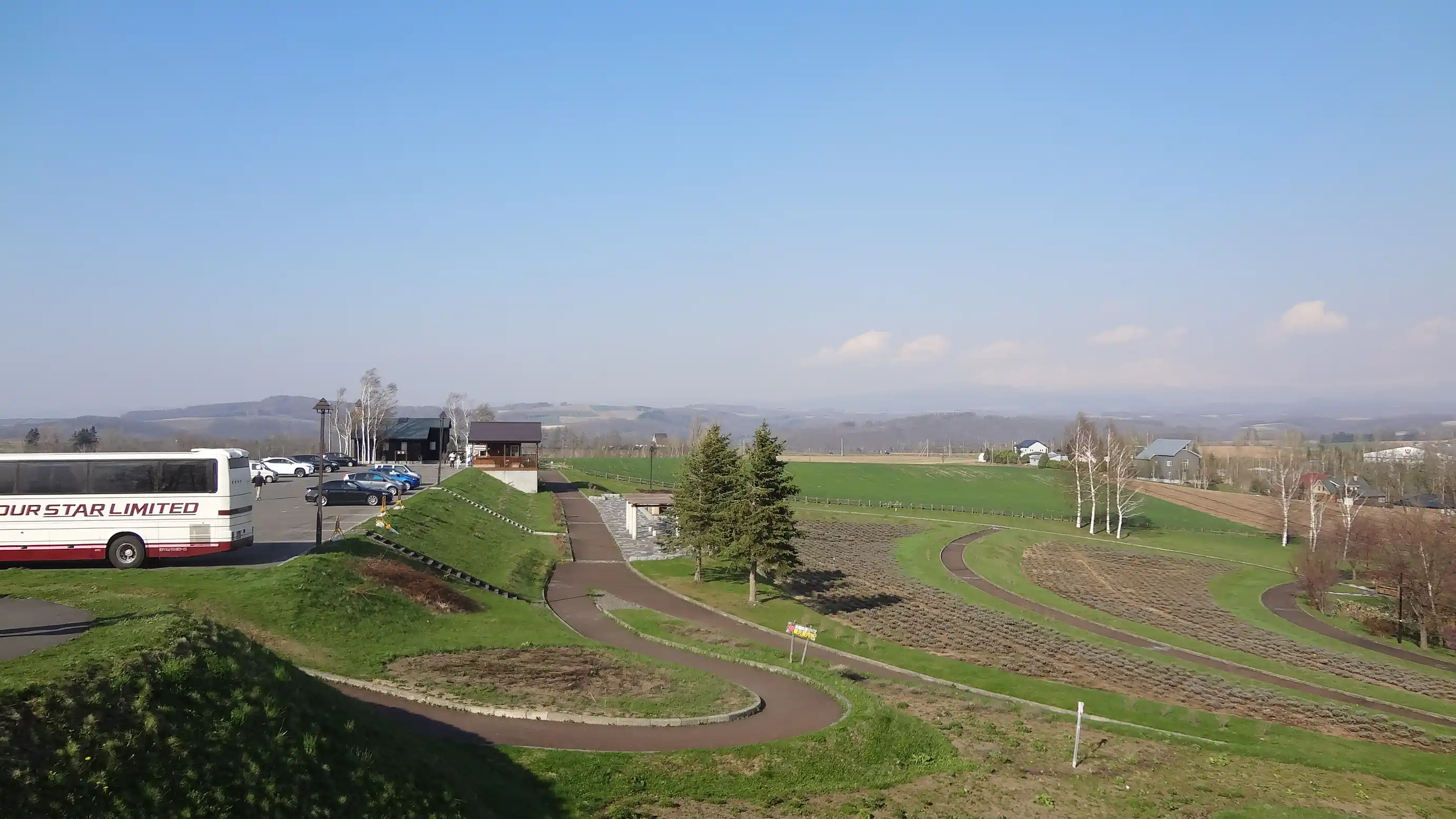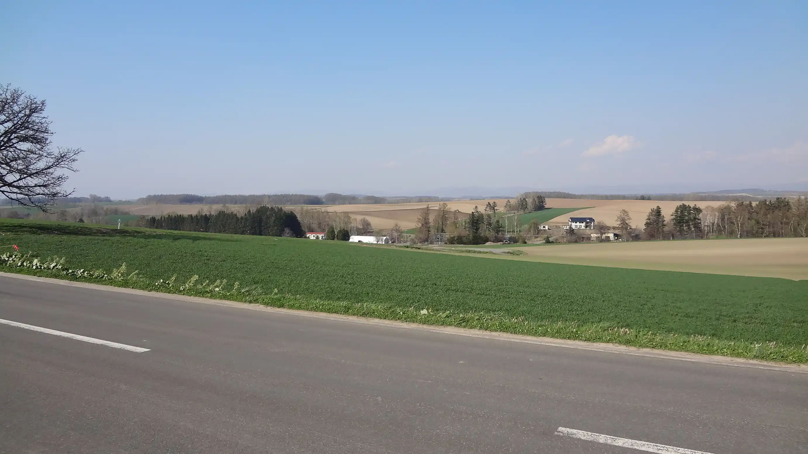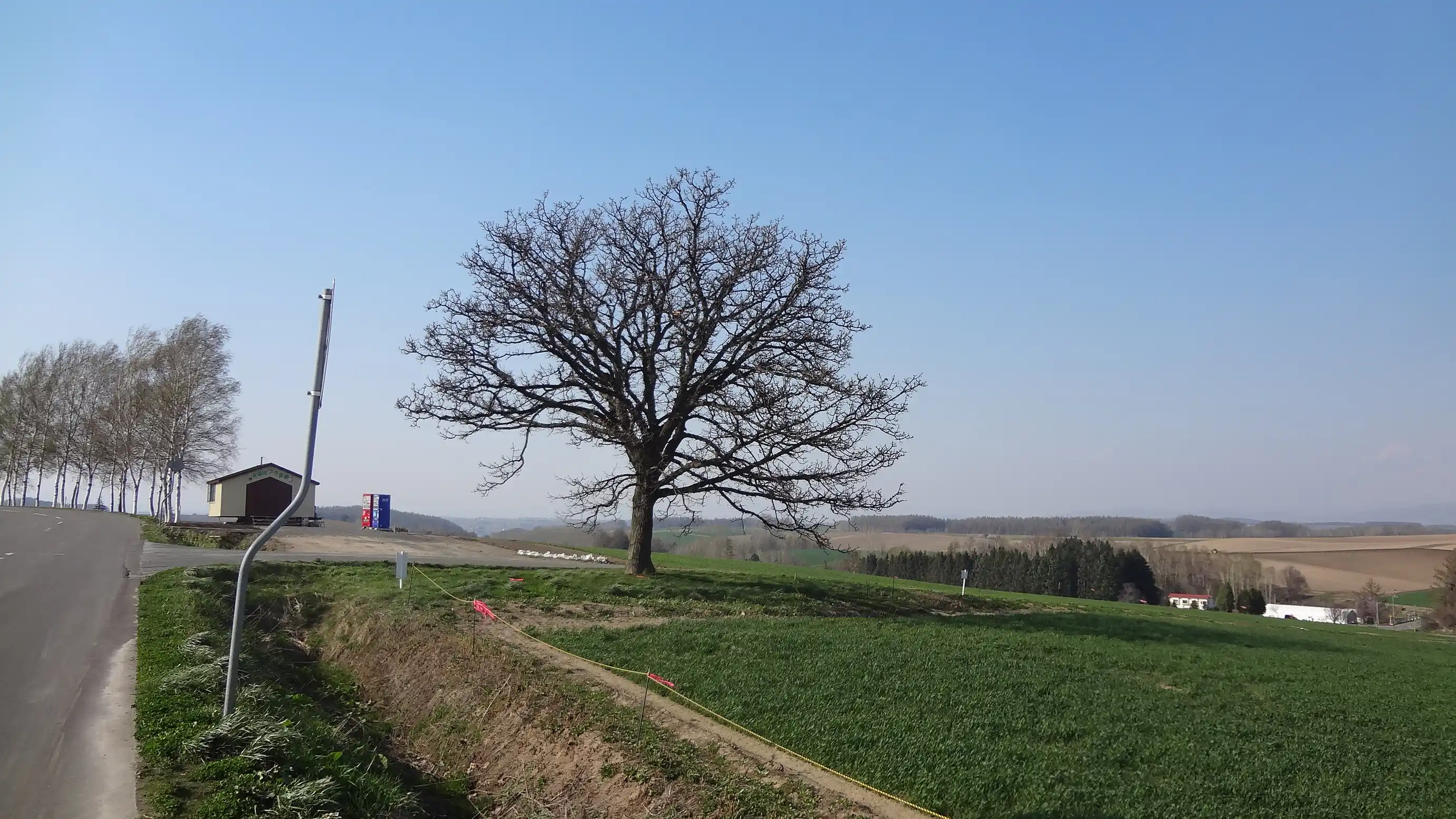 This is Ken and Mary’s Tree in Biei and its surroundings. It’s famous from advertisements, but it didn’t look any different from an ordinary tree. Since this is a cold region, the landscape felt barren like winter even though spring is in full bloom in South Korea, making the scenery even less impressive. I wonder if this place is really worth including in a tourist course.