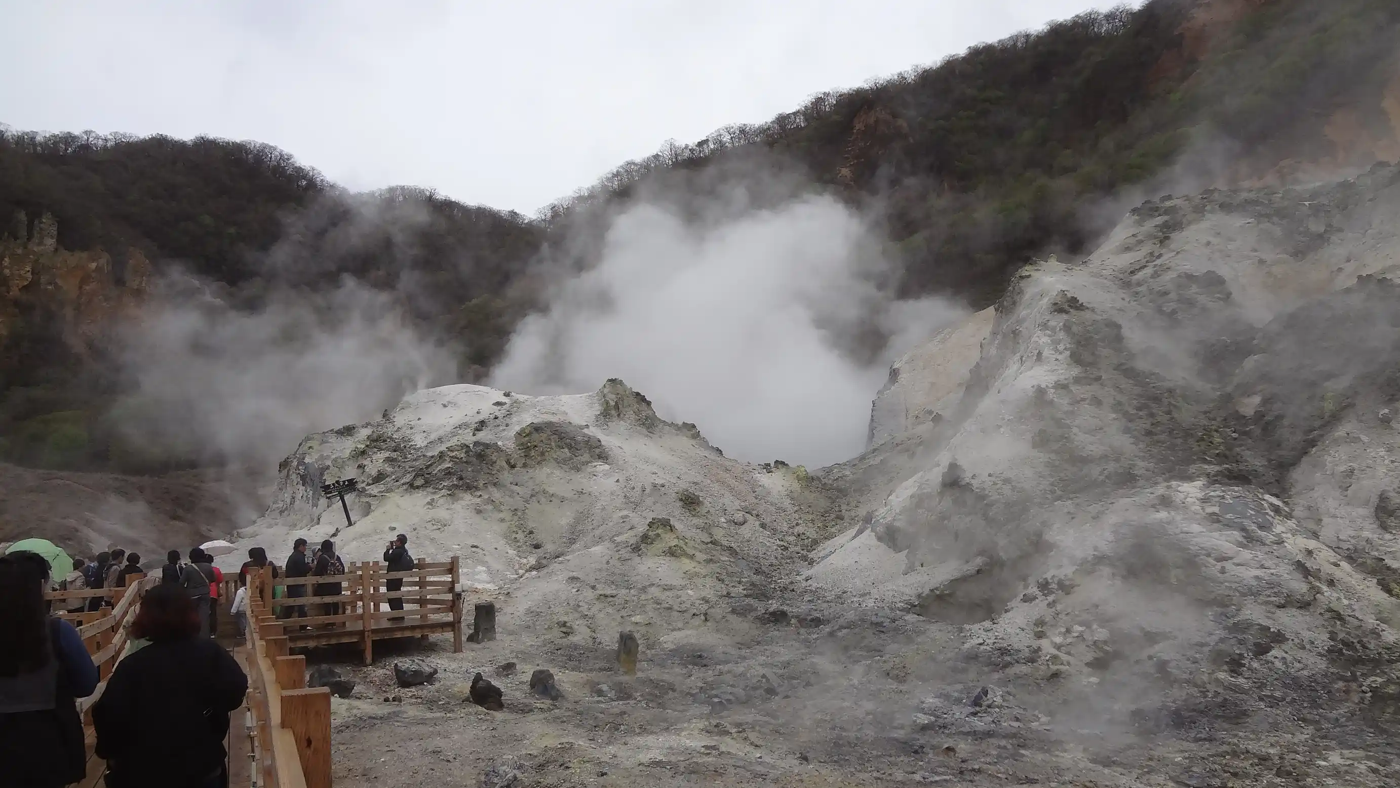 This is Noboribetsu Jigokudani. It was somewhat worth seeing due to the unique scenery.