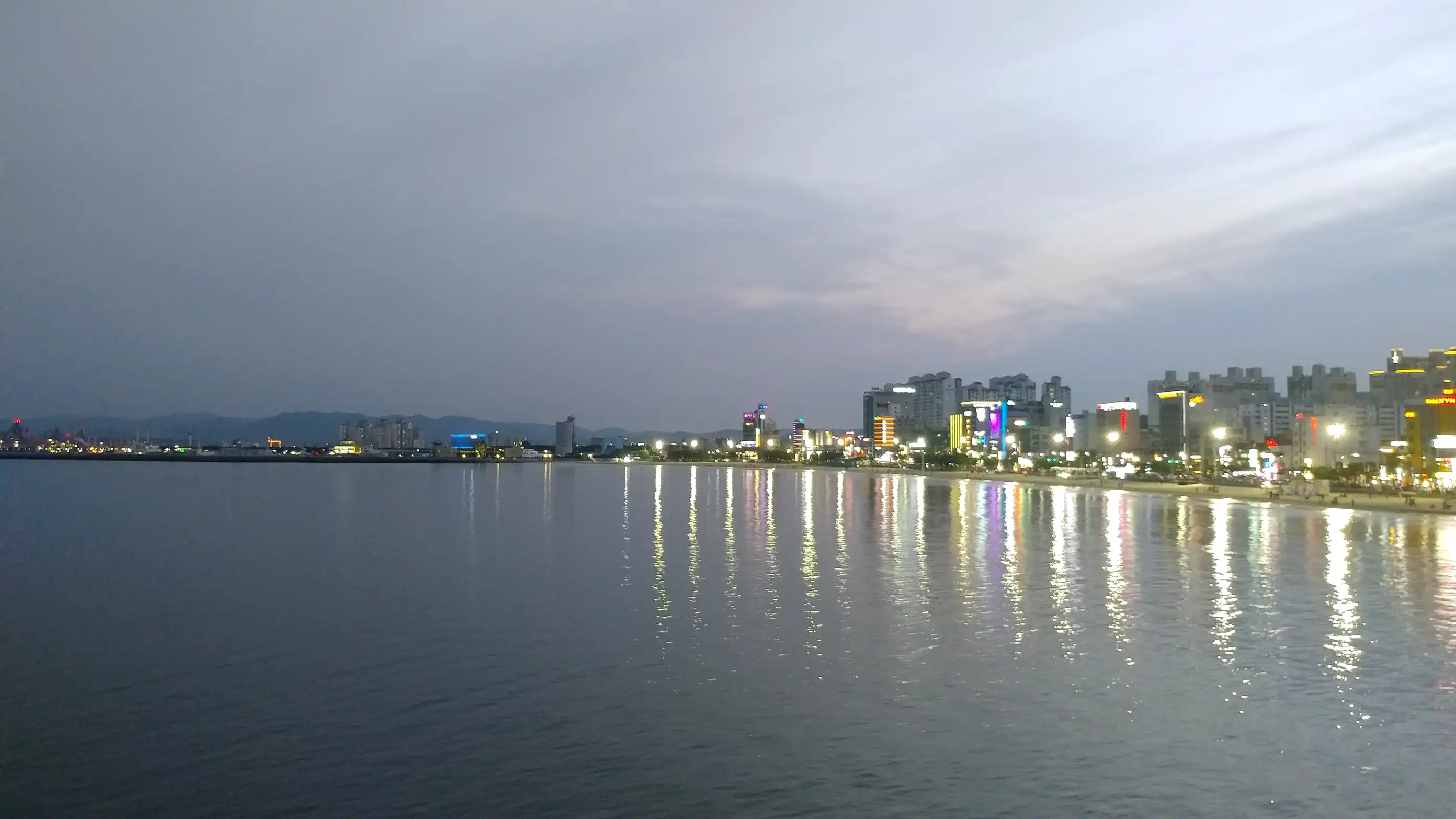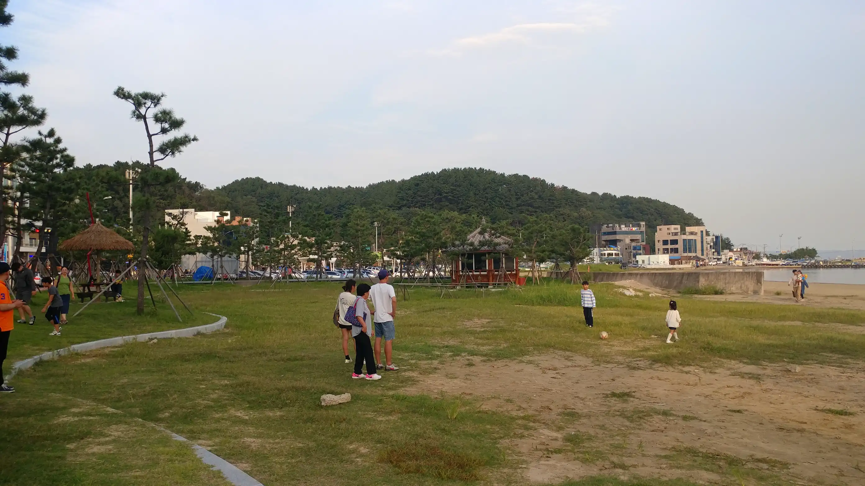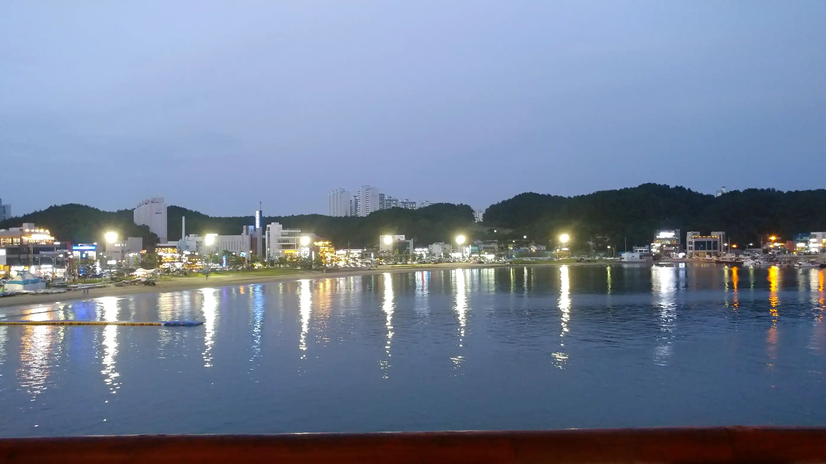 We continued south along the coastal road and stopped by the seaside in Pohang. There were many people because it was a holiday. We stopped at a raw fish restaurant and had mulhoe for dinner. It was delicious. After the meal, we walked along the nearby seaside. We also visited Yeongilru, a pavilion over the sea. The scenery was nice with the beach, buildings, and factory facilities blended together.